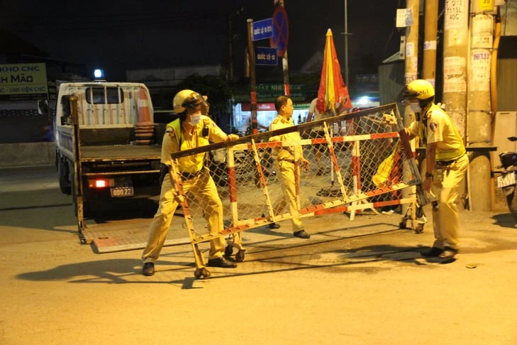 Ngoài ra, lãnh đạo Đội CSGT Bình Triệu cùng nhiều cán bộ chiến sĩ cũng có mặt từ rất sớm để khảo sát vị trí, giám sát công tác chuẩn bị chốt kiểm dịch. Các băng rôn, biển báo hướng dẫn, trang thiết bị phục vụ công tác kiểm tra dịch cũng chuẩn bị đầy đủ.
