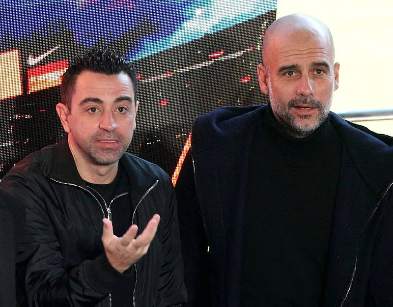Thầy mới Xavi, thầy cũ Pep Guardiola và Chủ tịch Laporta của Barcelona.