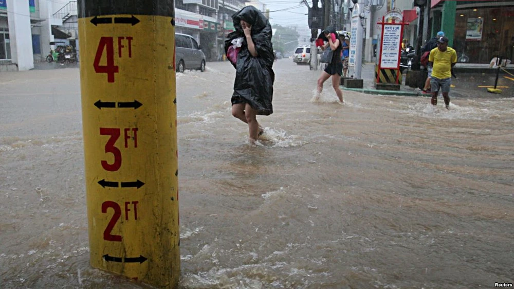 Bão Linfa tấn công vào miền Nam Trung Quốc từ đầu tuần này, nhiều khu ngập trong mưa lớn (ảnh: Reuters)