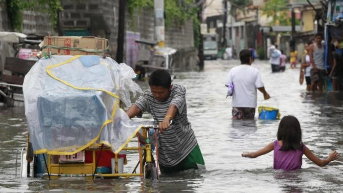 Người dân phải sống chung với nước ngập vì mưa lớn kéo dài dữ dội (ảnh: News.cn)
