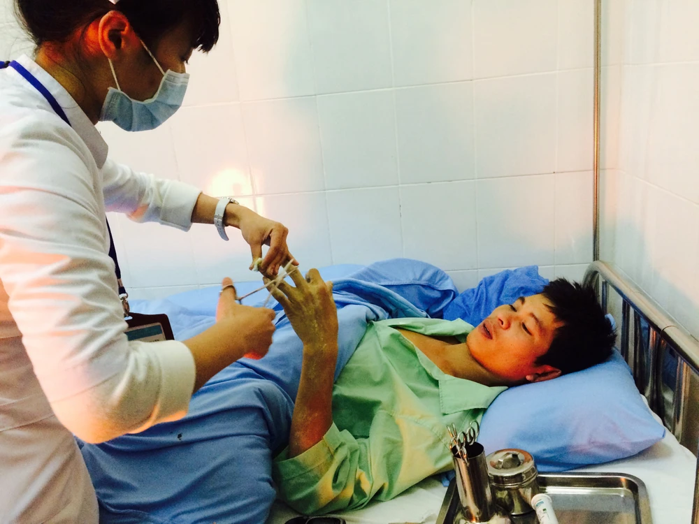 Anh Nguyễn Văn Quang đang được điều trị tại bệnh viện.