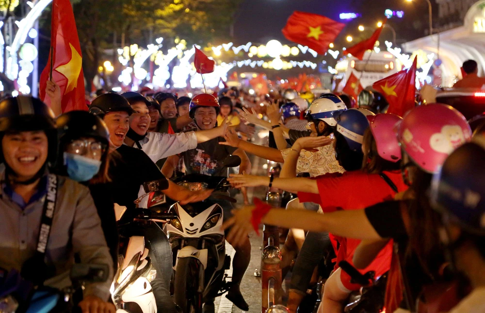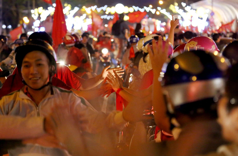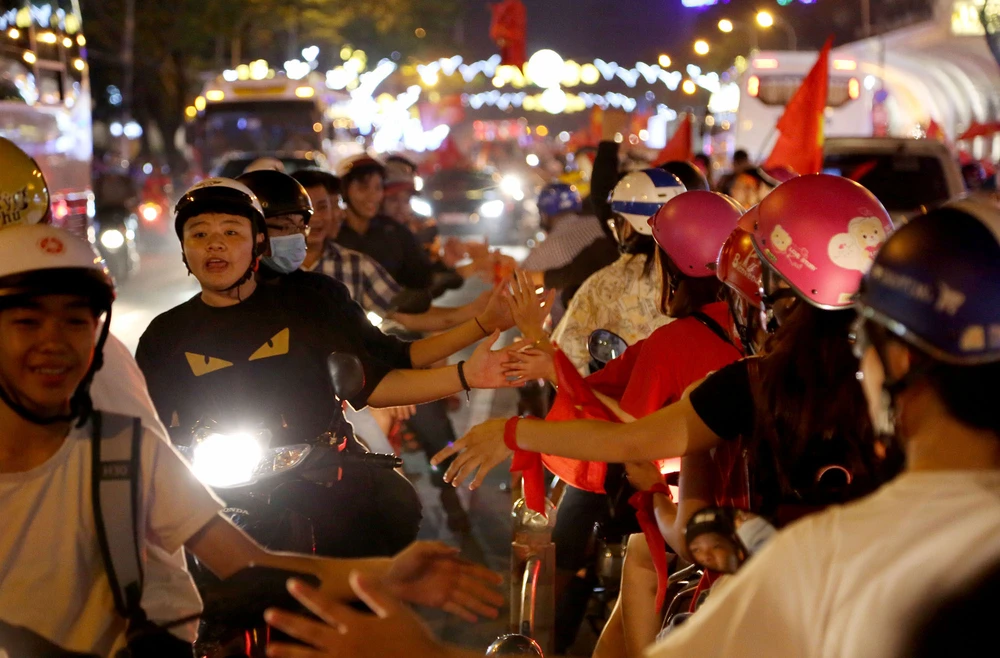 Những người hùng ấy đã kết nối những cổ động viên xa lạ. Giữa hai làn đường, cổ động viên chạy thật chậm để bắt tay chúc mừng nhau sau trận đấu.