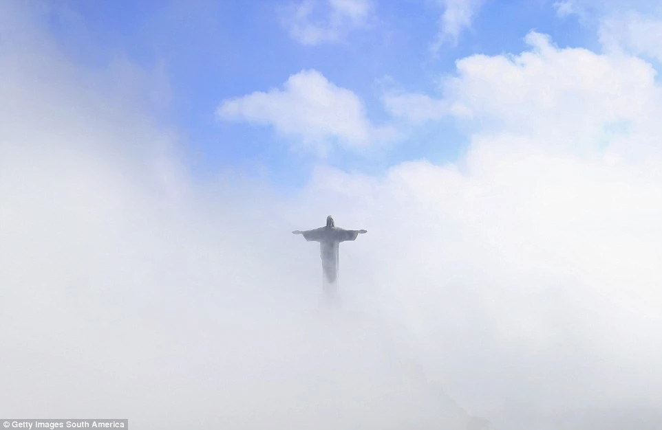 Bức tượng chúa Giê Su huyền ảo giữa những đám mây.