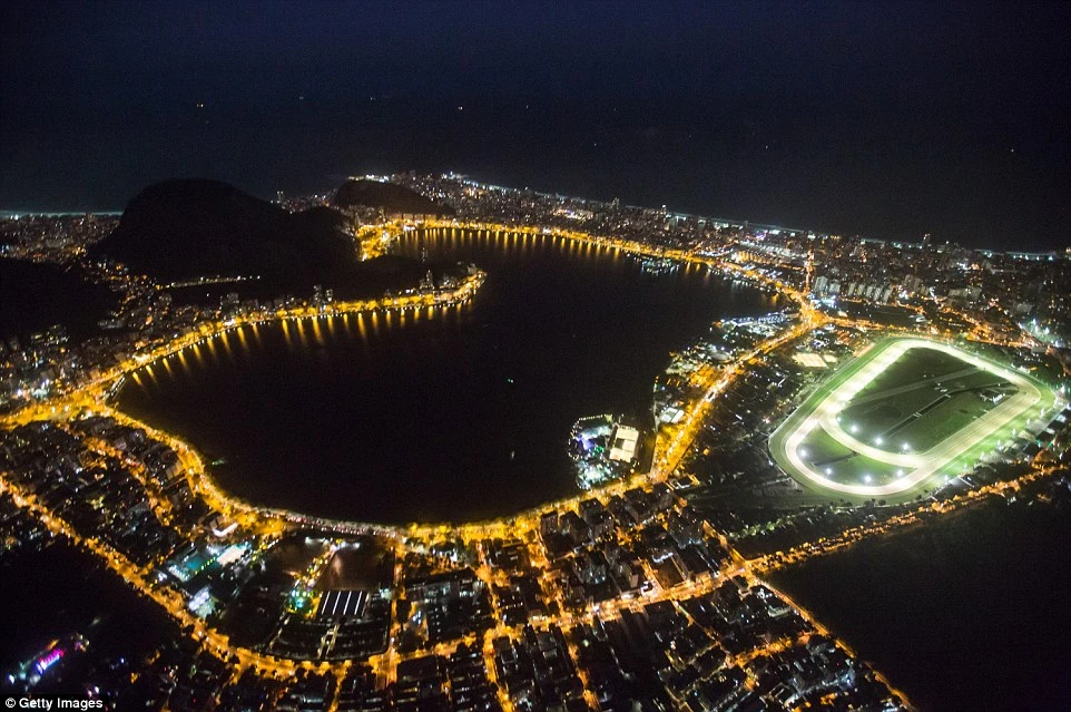 Hình ảnh được chụp vào Chủ nhật tại địa điểm thi đấu môn chèo thuyền tại Rio de Janeiro đẹp lung linh trong đêm.