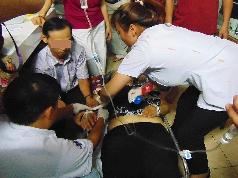 Bất ngờ bà H. lả người, nghiêng về một bên. Ngay lập tức BS Phượng, ĐD Thơ, ĐD Hồng cùng vài người đặt bà H. lên băng và nhanh chóng chuyền dịch. Sau khi ổn định, bà H. được đưa lên xe cấp cứu để chuyển đến bệnh viện Nhân dân 115 (TP.HCM) chăm sóc.