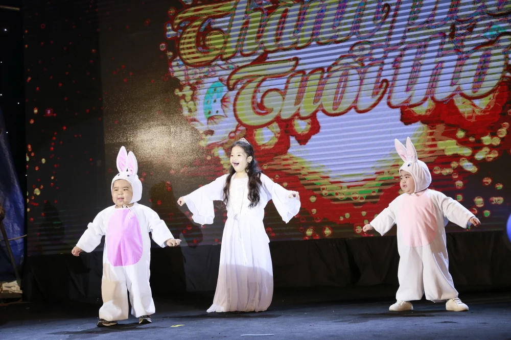 Các bé thiếu nhi diễn sự tích Thỏ ngọc ở cung trăng.
