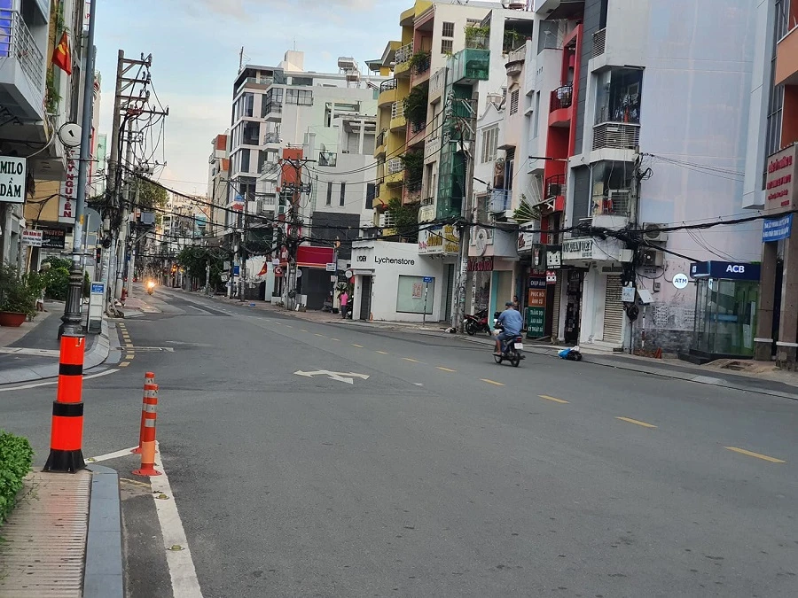 Rất ít phương tiện giao thông di chuyển trên tuyến đường Trịnh Đình Thảo, quận Tân Phú.