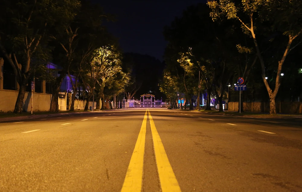 Đường Lê Duẩn (quận 1) hướng về Thảo Cầm Viên không một bóng người qua lại sau 18 giờ.