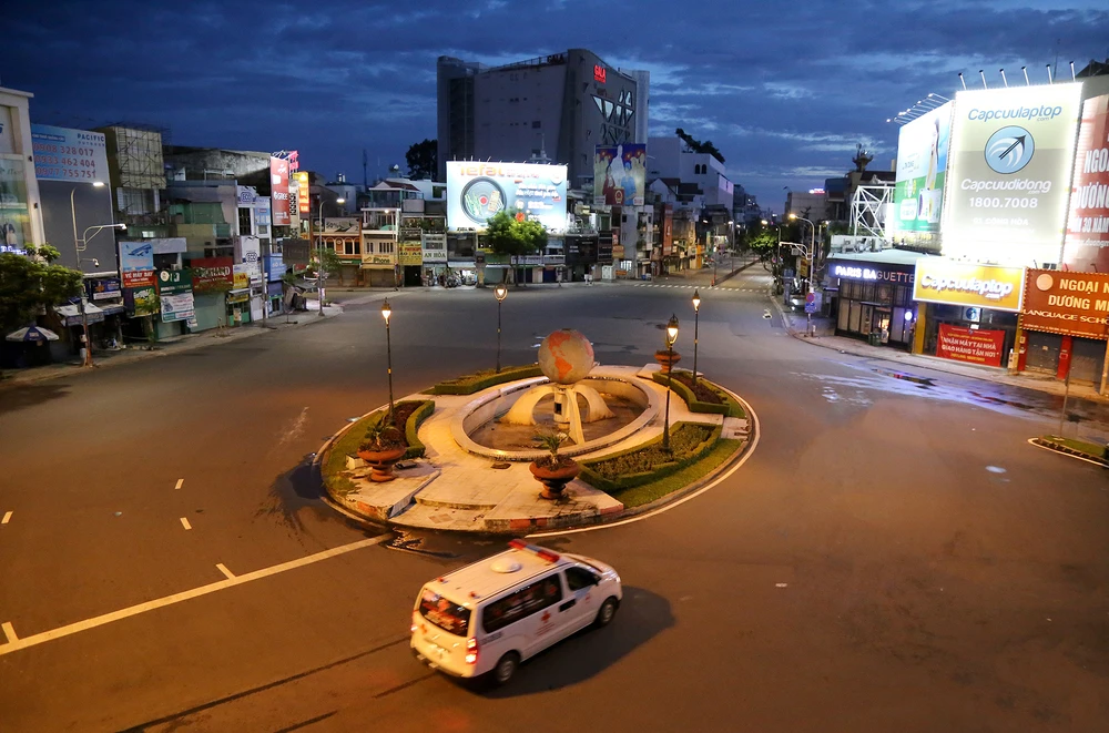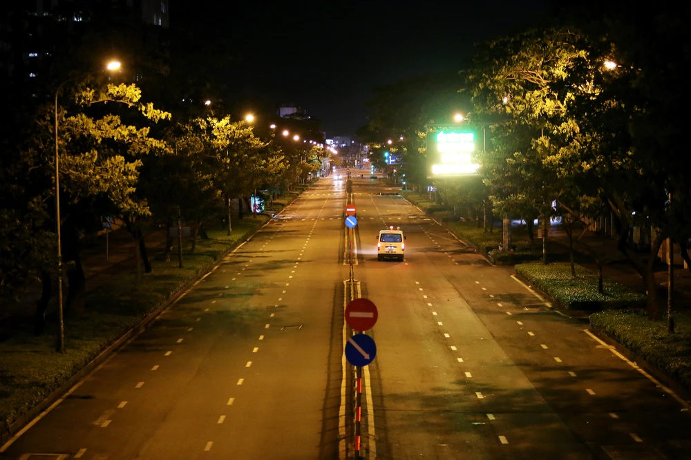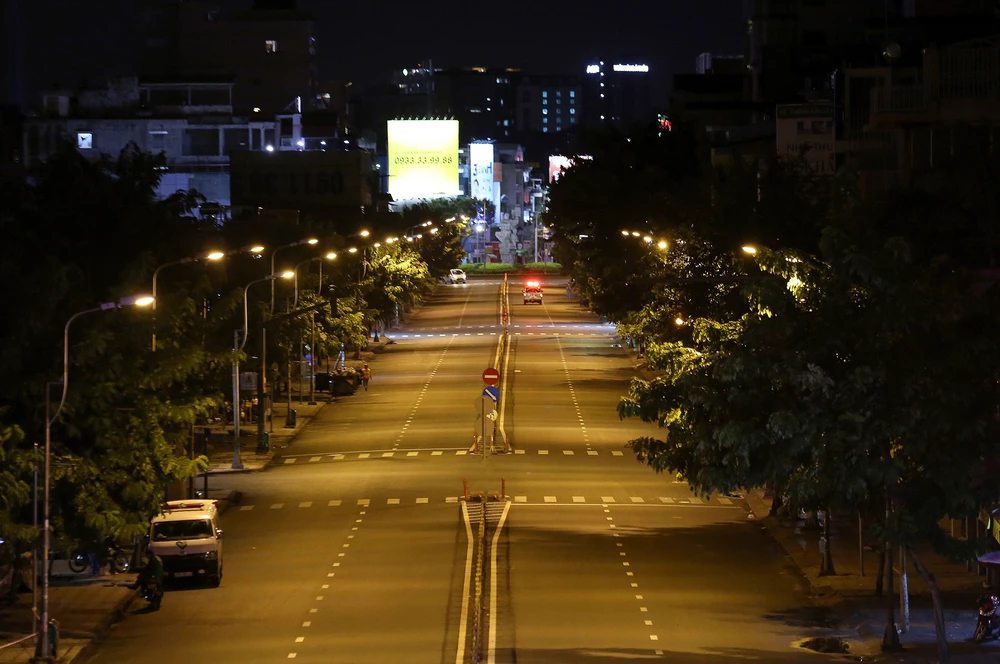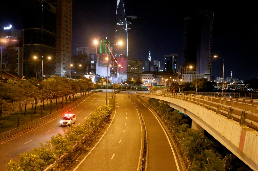 Thực hiện chỉ đạo của Chủ tịch UBND TP.HCM, từ 18 giờ hôm trước đến 6 giờ sáng hôm sau người dân không ra đường để đảm bảo giãn cách xã hội. Đúng 18 giờ, tuyến đường Phan Đăng Lưu (quận Phú Nhuận) đã không còn xe cộ qua lại.