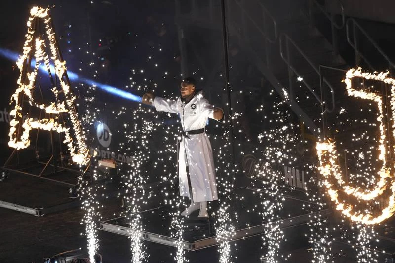 Joshua bước ra chào khán giả nhà ở võ đài Tottenham Hotsour với 68.000 khán giả rất tự tin.