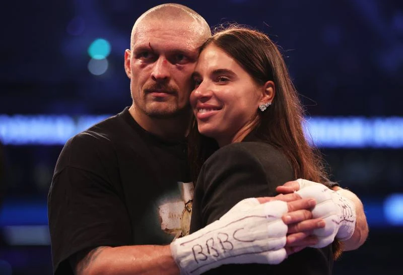 Vợ Osyk chạy lên võ đài ăn mừng cùng chồng.