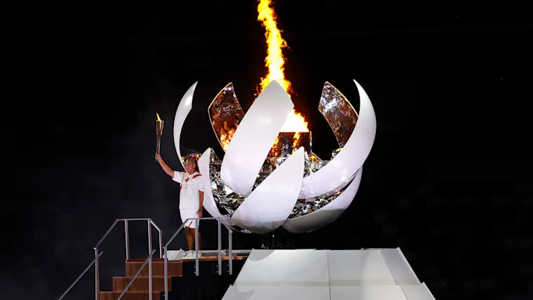 Ngôi sao quần vợt Nhật Naomi Osaka châm đuốc Olympic.