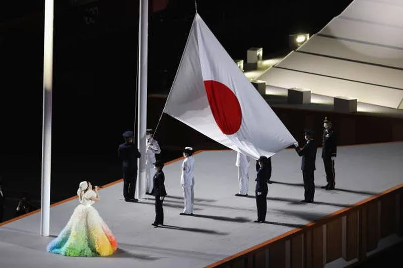 Cờ Nhật được kéo lên tại lễ khai mạc.