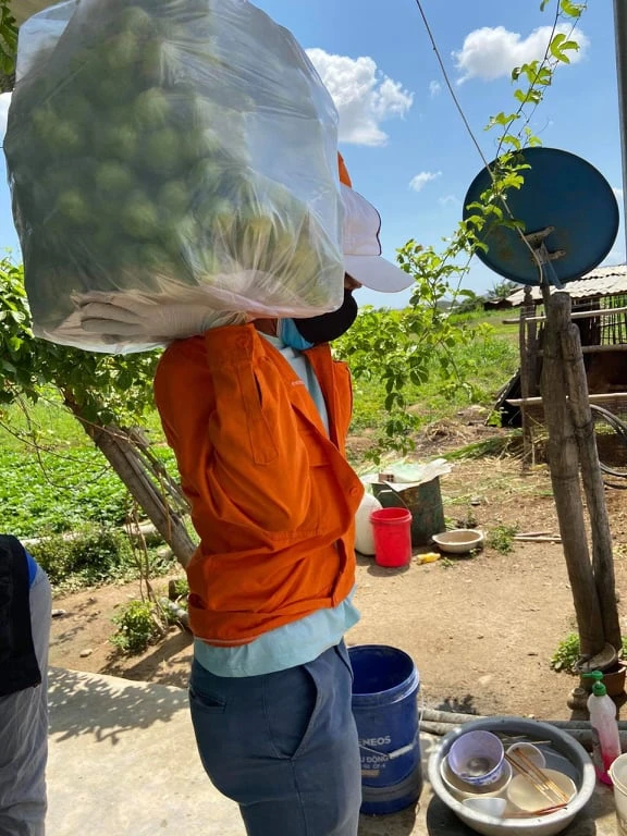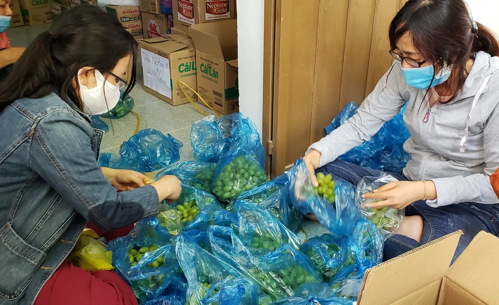 Từng phần trái cây được đóng gói đem vào khu vực cách ly Văn Lâm 3.