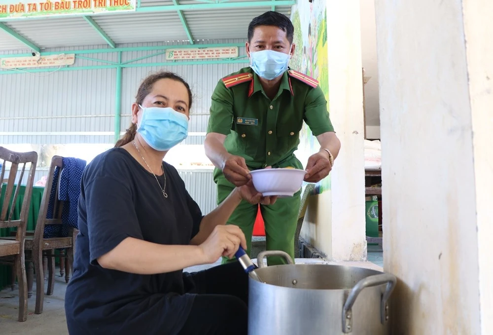 Từ đó, mỗi ca trực các chiến sĩ cũng gắn theo những bữa ăn vội là cơm hộp, bánh mì khô khan. Thấy vậy, chị Bá Thị Sa Ti (xã Phước Nam, huyện Thuận Nam) đã tự nguyện dậy từ lúc 5 giờ sáng đến Trường Tiểu học Văn Lâm (nơi được làm khu dã chiến ăn ở của lực lượng công an) để chắt chiu nấu từng bữa cơm cho các chiến sĩ.