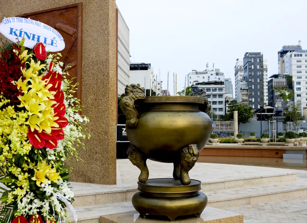 Lư hương được cung thỉnh đặt lại dưới tượng đài Đức Thánh Trần Hưng Đạo vào khuya ngày 16-3.