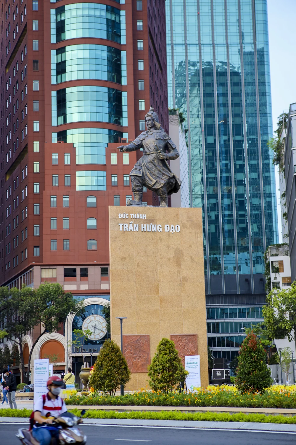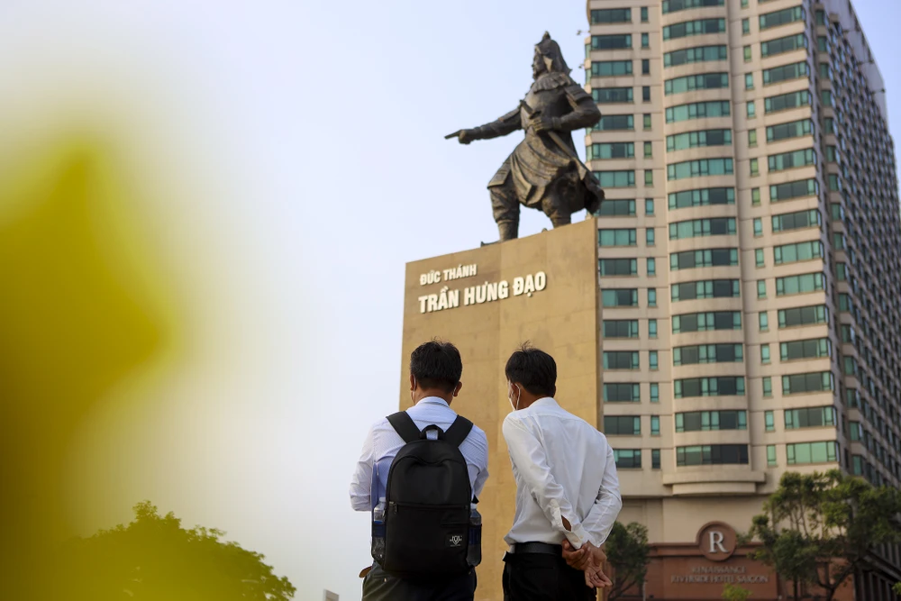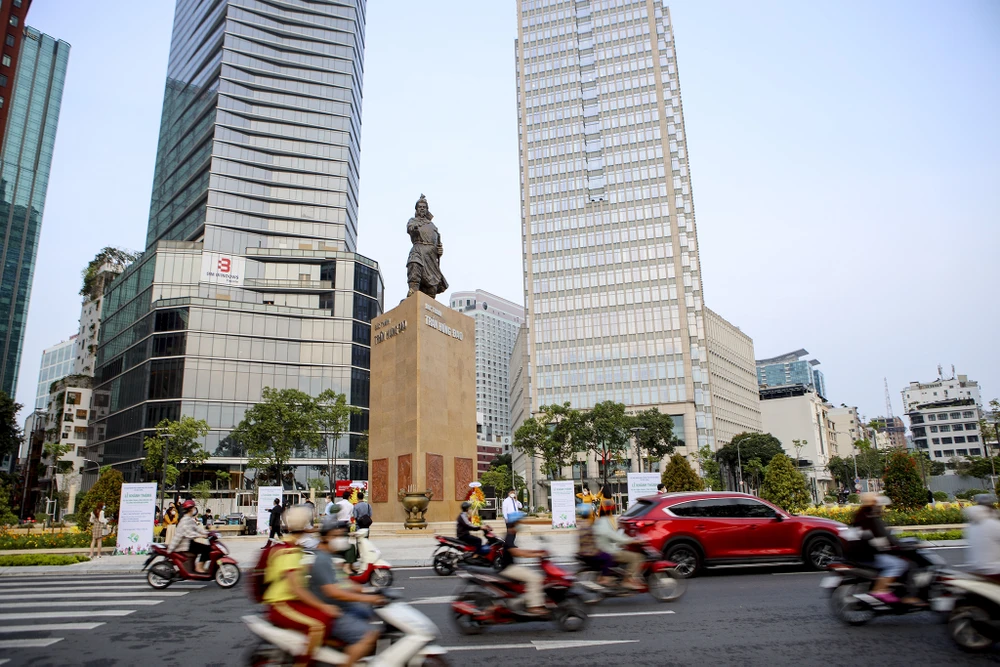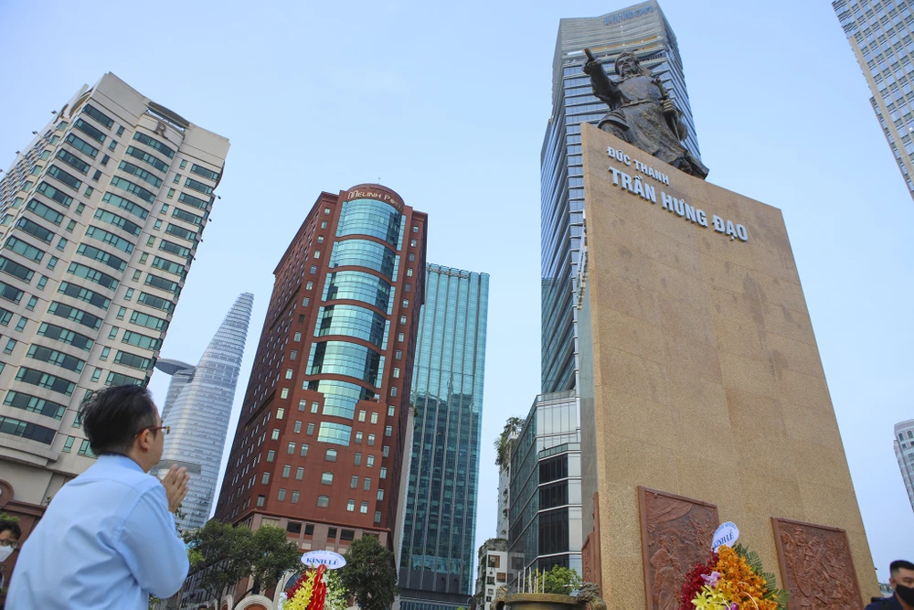 Công trình tượng đài Đức thánh Trần Hưng Đạo nằm ngay trung tâm quận 1, đối diện bến tàu buýt Bạch Đằng.
