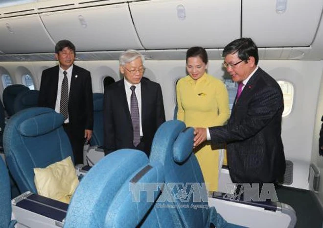 Tổng Bí thư Nguyễn Phú Trọng đã chúc mừng sự kiện có ý nghĩa quan trọng trong kế hoạch mở rộng và đổi mới đội tàu bay, đưa Vietnam Airlines trở thành hãng hàng không đầu tiên ở châu Á- Thái Bình Dương tiếp nhận và khai thác hai loại máy bay hiện đại thế hệ mới là Boeing 787-9 Dreamliner và Airbus A350-900 XWB.