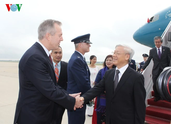 Đón đoàn còn có Đại sứ Việt Nam tại Hoa Kỳ Phạm Quang Vinh; Đại sứ, Đại biện các nước ASEAN tại Hoa Kỳ cùng đại diện cộng đồng người Việt Nam, lưu học sinh, sinh viên đang sinh sống, làm việc, học tập tại Hoa Kỳ.