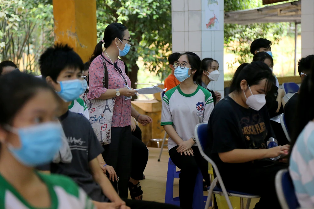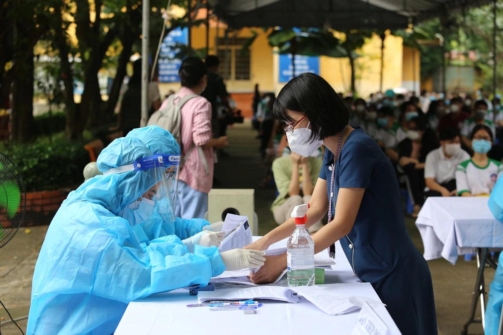 Theo Bác sĩ Nguyễn Thành Danh, Trưởng phòng Y tế huyện Củ Chi các em sẽ được gọi đến tiêm theo các khung giờ khác nhau để đảm bảo không tập trung quá đông người tại một thời điểm. Ảnh: HOÀNG GIANG