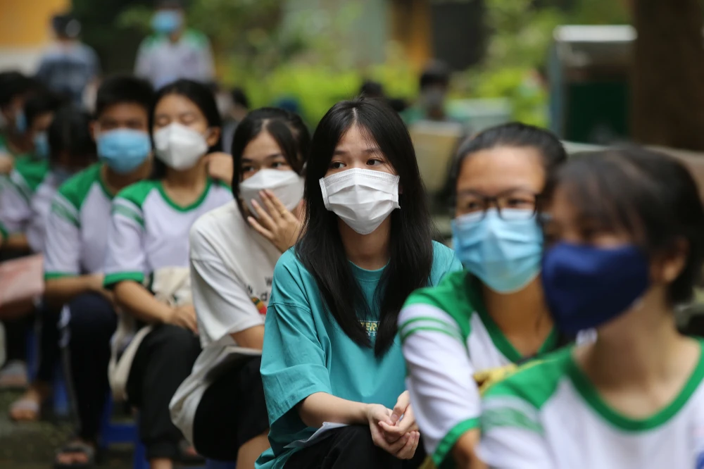 Nhìn chung các em trường THPT thị trấn Củ Chi đều cho biết cảm thấy thoải mái trong ngày đầu tiêm. Ảnh: HOÀNG GIANG