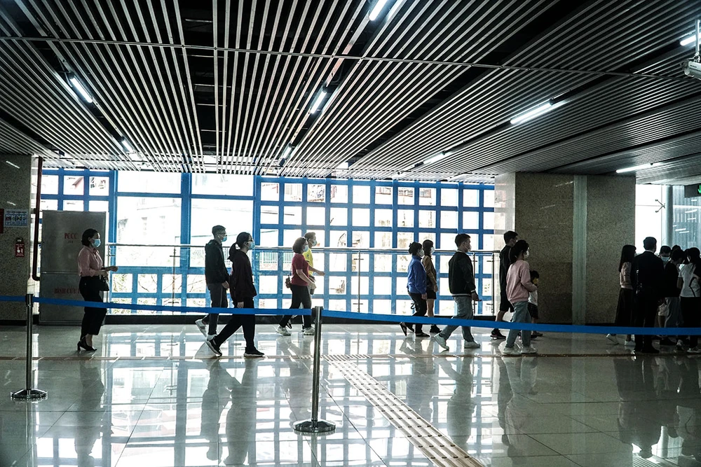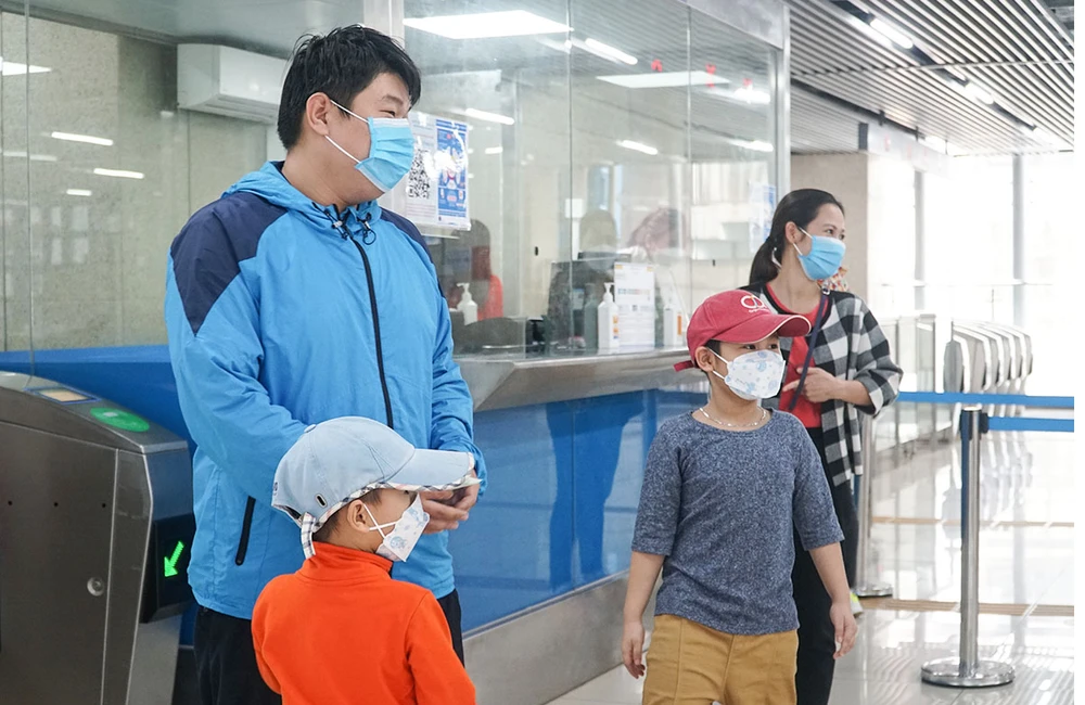Ghi nhận lúc 9 giờ sáng 21-11 tại ga Cát Linh lượng hành khách khá đông đúc, mặc dù Metro Hà Nội đã chính thức khai thác thương mại nhưng do hôm nay là ngày cuối tuần, nhiều người dân vẫn có tâm lý tới đây để trải nghiệm.