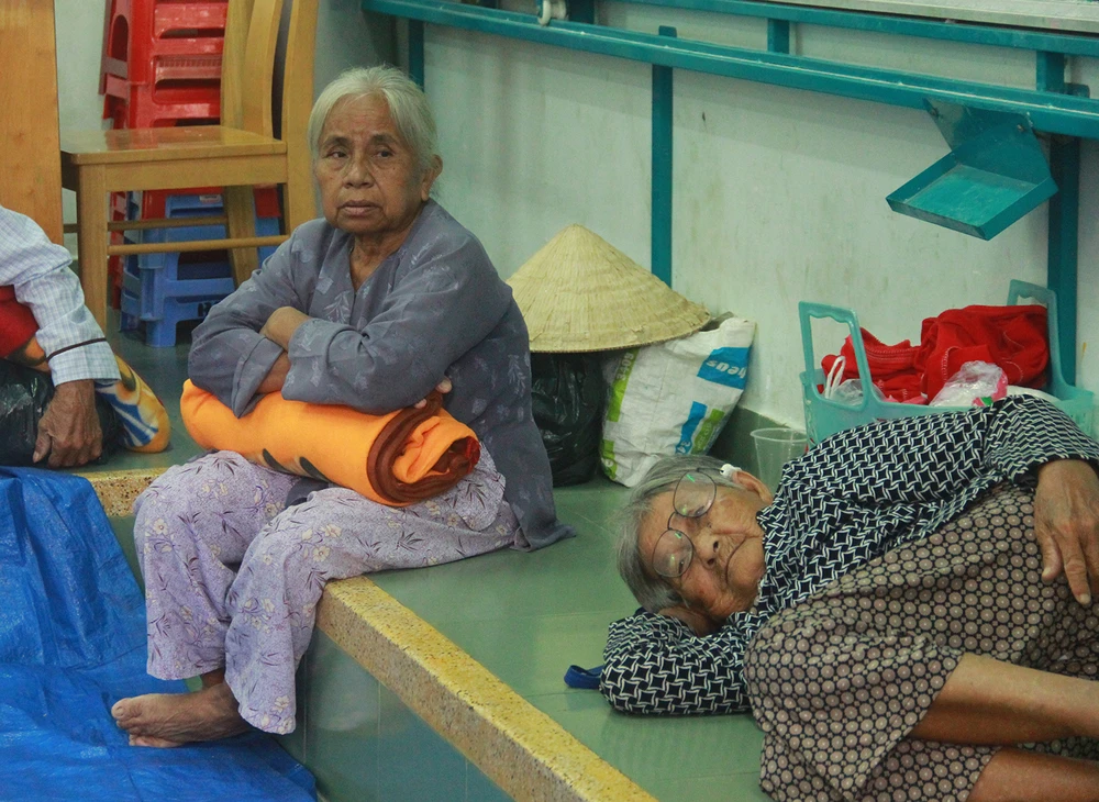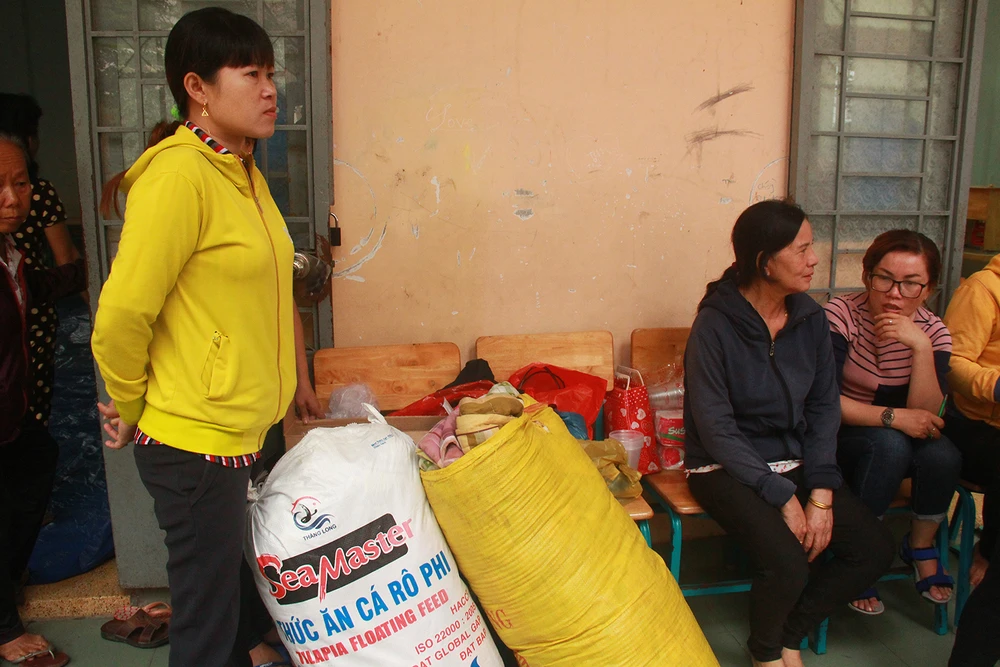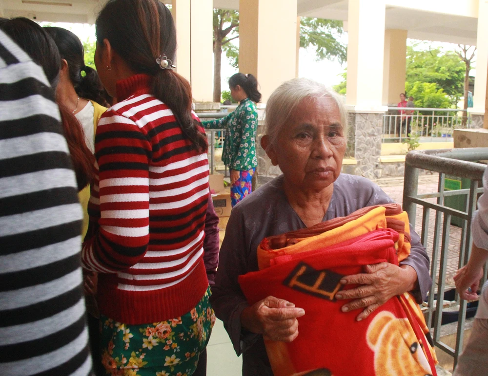 Người dân Cần Giờ đến các điểm trú tránh được phát chăn màn.