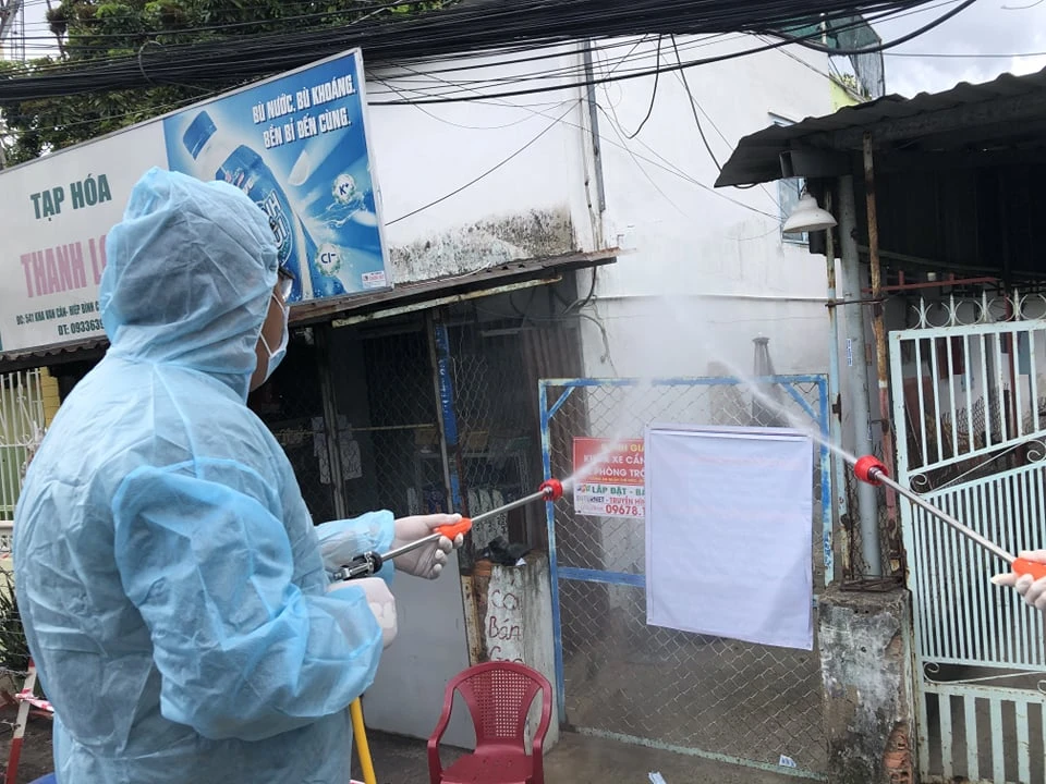 Điiểm phong toả, cách ly do có trường hợp F1 tại đường song hành Kha Vạn Cân được phun kỹ lưỡng hơn.