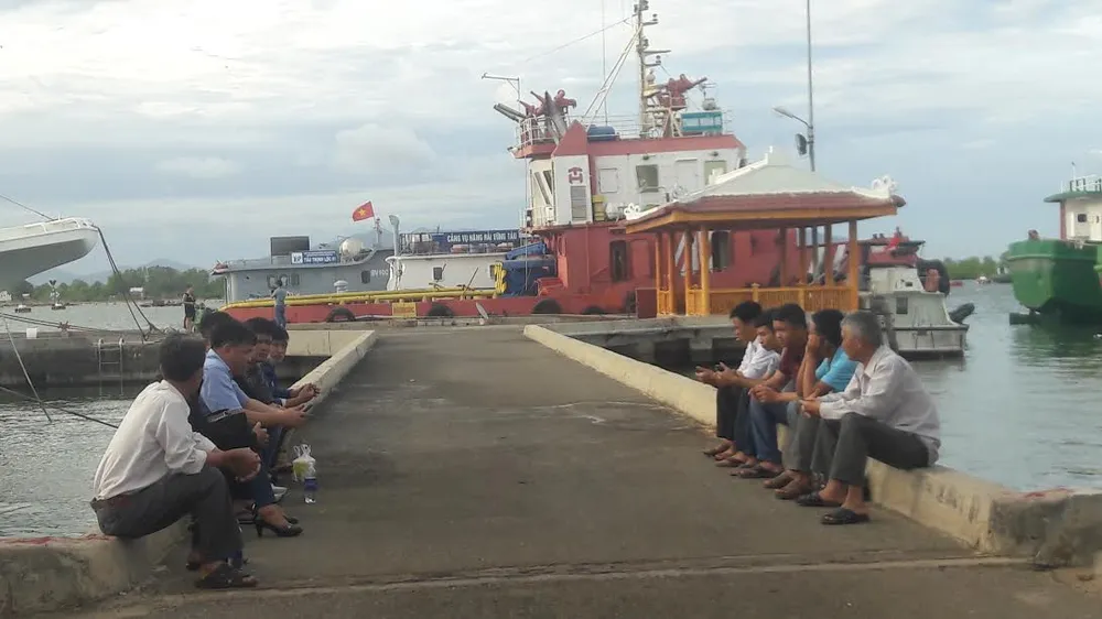 Gia đình ngồi ở cầu tàu ngóng chờ tin các thuyền viên