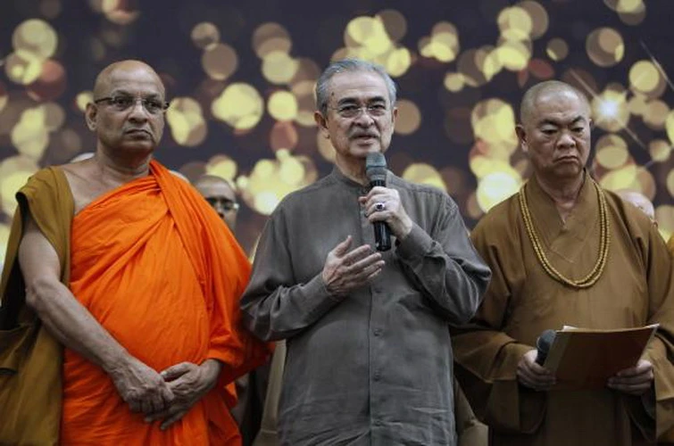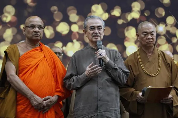 Cựu Thủ tướng Malaysia, ông Abdullah Ahmad Badawi tham gia buổi cầu nguyện tại sân bay quốc tế Kuala Lumpur hôm 9-3.