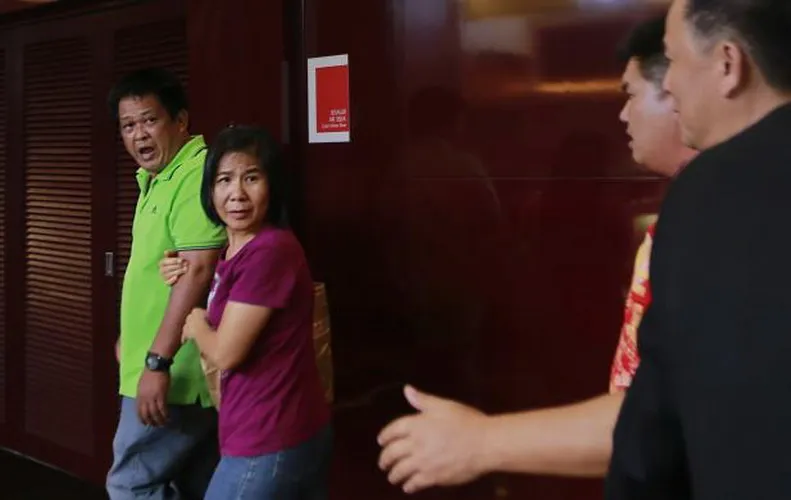Cô Arni Marlina, 36 tuổi, kìm nén tiếng khóc để ngóng chờ tin tức người thân tại khách sạn ở Putrajaya