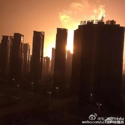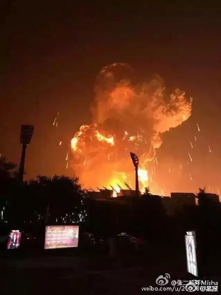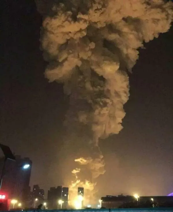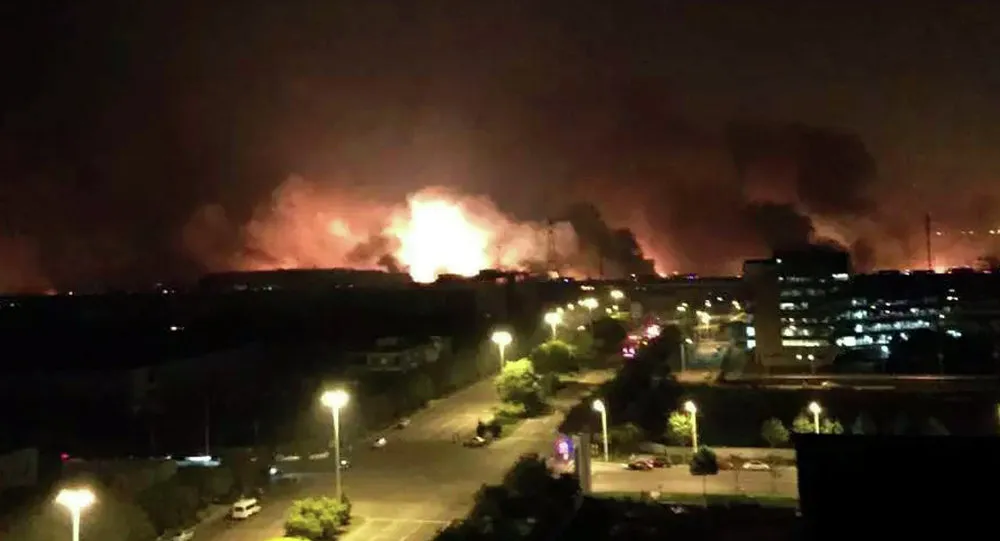 Được biết vụ nổ bắt nguồn từ một nhà kho chứa chất nổ trong khu vực công nghiệp thành phố cảng Thiên Tân (Trung Quốc) (Nguồn: RT)