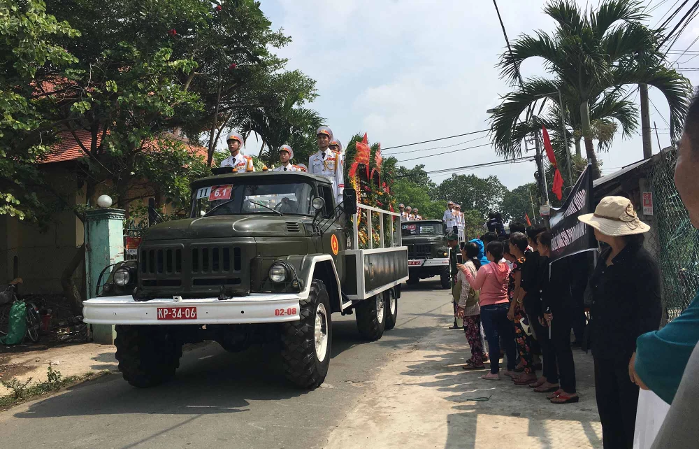 Người dân Củ Chi chờ đón đoàn xe tang.