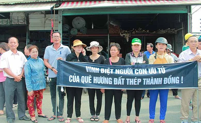 Lời tri ân của người dân Củ Chi dành cho cố Thủ tướng Phan Văn Khải qua tấm băng rôn: "Vĩnh biệt người con ưu tú của quê hương đất thép thành đồng!".