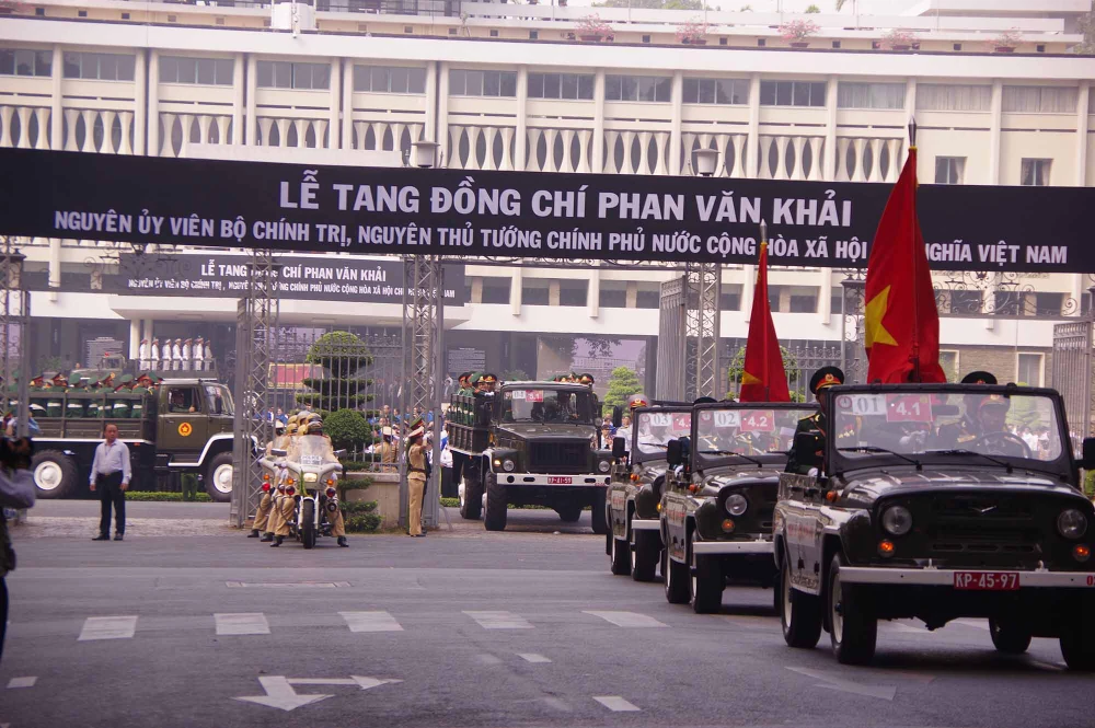 Xe đưa linh cữu cố Thủ tướng Phan Văn Khải về đến nhà riêng tại xã Tân Thông Hội, huyện Củ Chi và sau đó là nghi lễ an táng.