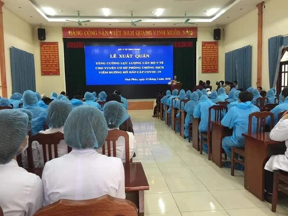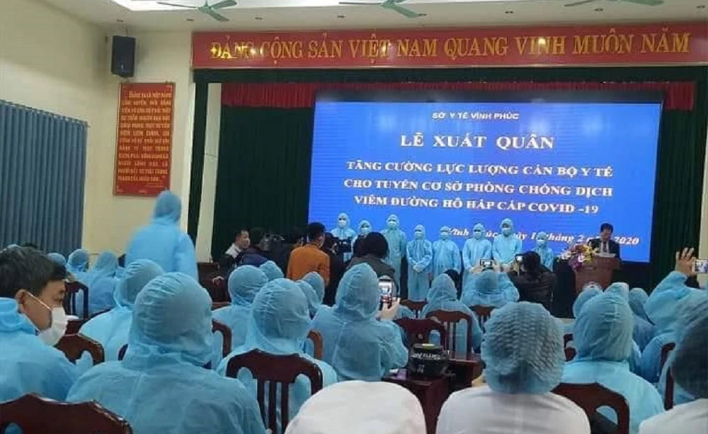 Chiều 13-2, Sở Y tế tỉnh Vĩnh Phúc tổ chức lễ xuất quân tăng cường lực lượng cán bộ y tế cho tuyến cơ sở phòng chống dịch bệnh do COVID-19 gây ra.