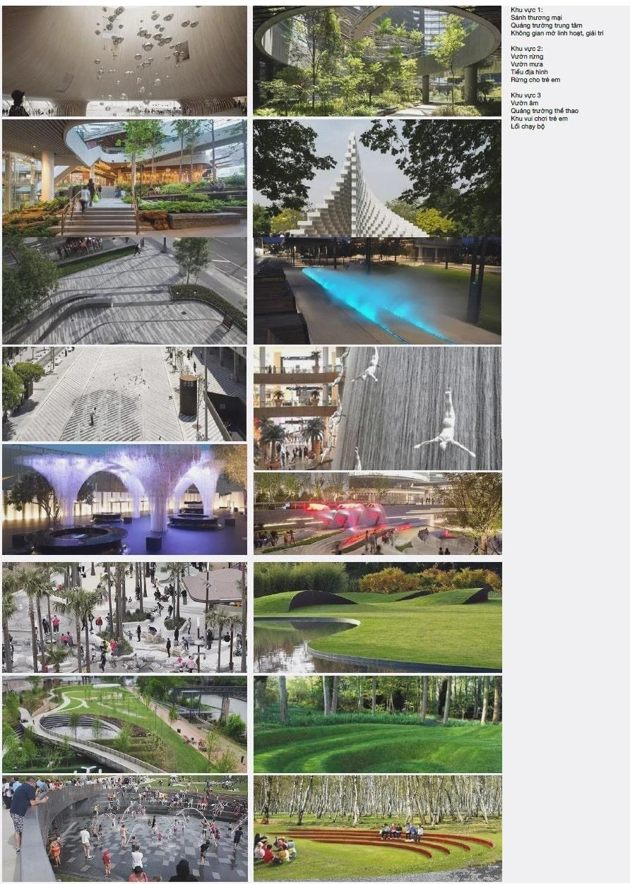 Ảnh minh họa chức năng tại các khu vực trong công viên.