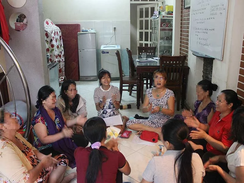 Chị Mộng Linh (áo sọc ngang - hình ảnh đã được nhân vật cho phép công khai) đang truyền thông kiến thức phòng, chống HIV/AIDS cho người bán dâm. Ảnh: H.LAN