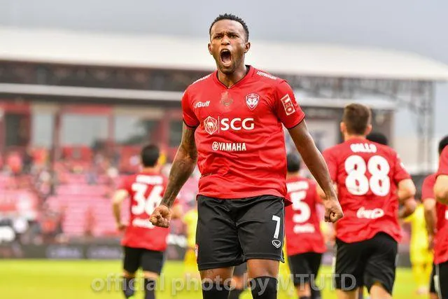Tiền đạo người Brazil Heberty góp công vào chiến thắng thứ sáu của Muangthong United. Ảnh: MTUtd