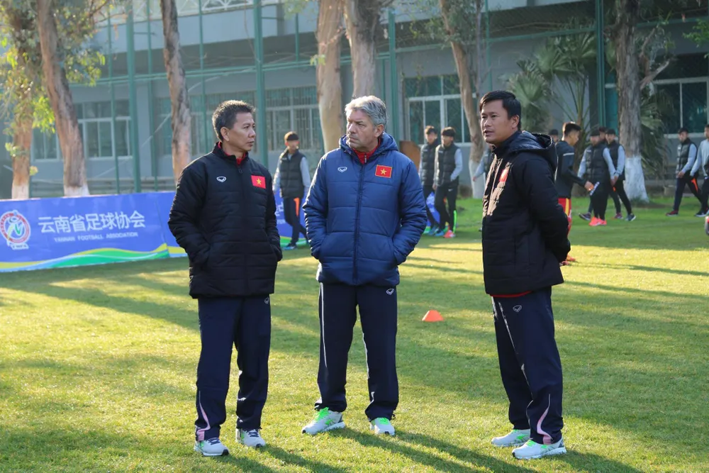 HLV Đinh Hồng Vinh (bìa phải) cùng Giám đốc kỹ thuật Gede và HLV Hoàng Anh Tuấn.