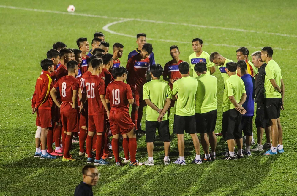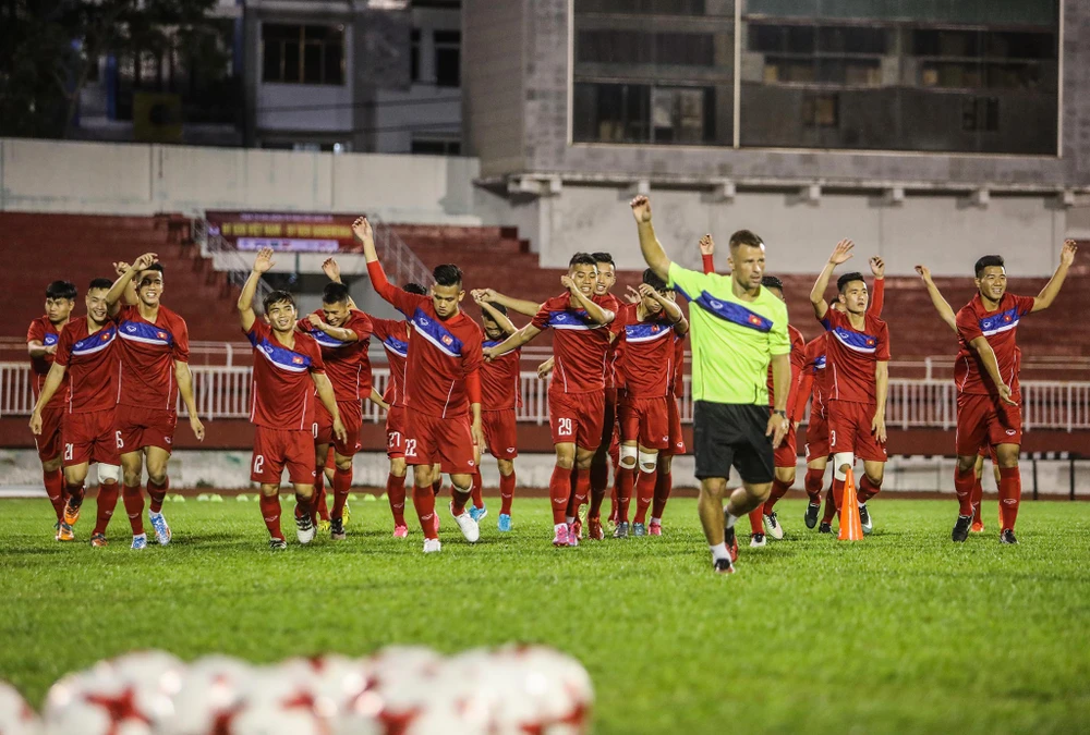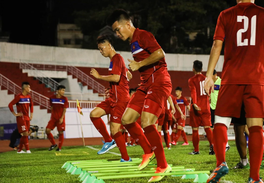 Không khí tập khẩn trương ngay đầu buổi tập.