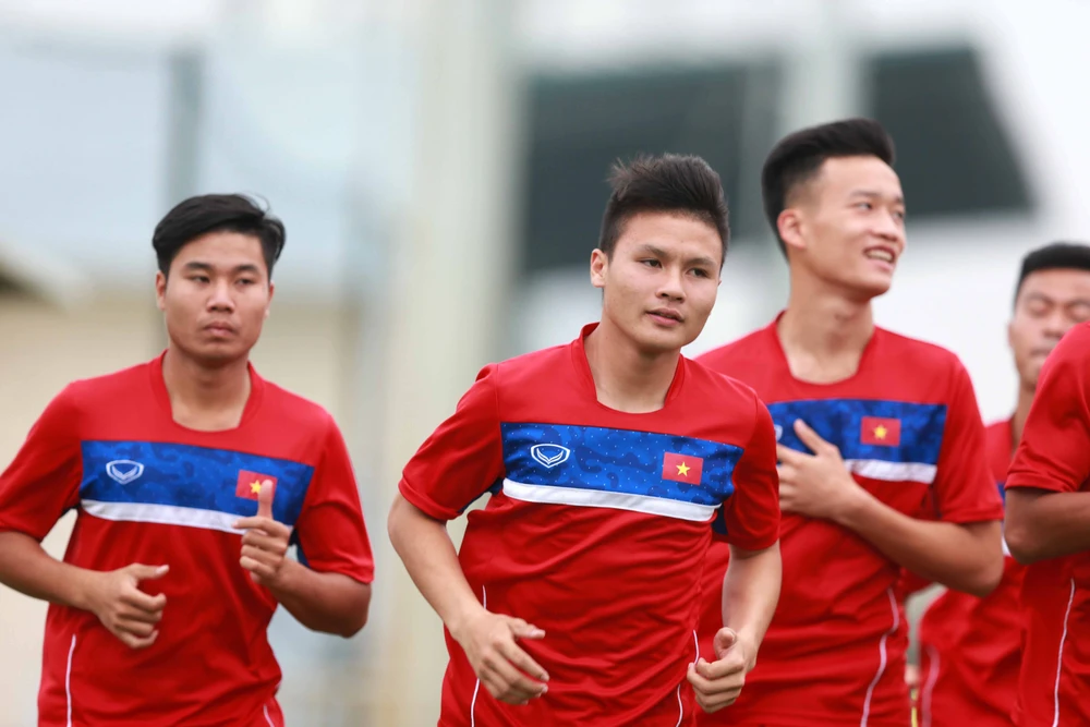 Thủ môn: Nguyễn Bá Minh Hiếu (Hà Nội), Đỗ Sỹ Huy (Hà Nội), Bùi Tiến Dũng (FLC Thanh Hóa, đội phó); hậu vệ: Đỗ Thanh Thịnh (SHB Đà Nẵng), Đoàn Văn Hậu, Đặng Văn Tới (Hà Nội), Hồ Tấn Tài (Bình Định), Trần Đình Trọng (Sài Gòn), Huỳnh Tấn Sinh (Quảng Nam), Nguyễn Trọng Đại (Viettel); tiền vệ: Tống Anh Tỷ (B. Bình Dương), Nguyễn Quang Hải (đội trưởng), Hồ Minh Dĩ (Hà Nội), Đinh Thanh Bình, Trần Thanh Sơn, Lương Hoàng Nam (HAGL, đội phó), Dương Văn Hào, Nguyễn Hoàng Đức (Viettel).