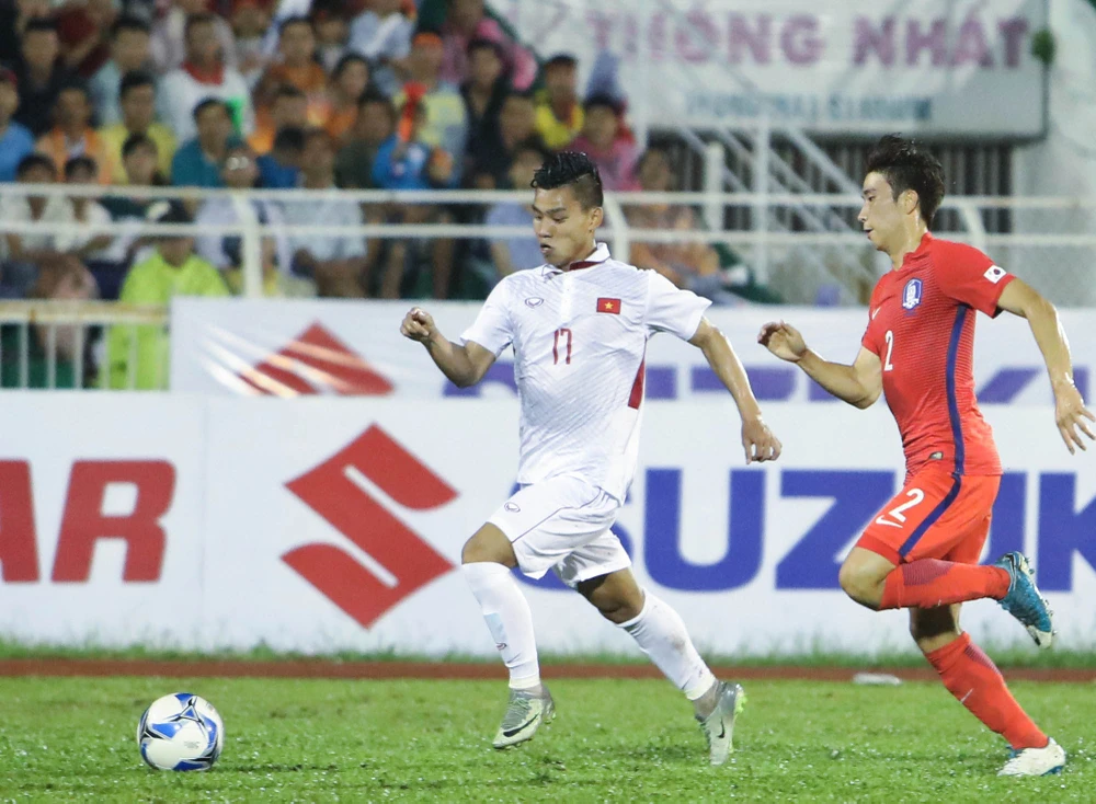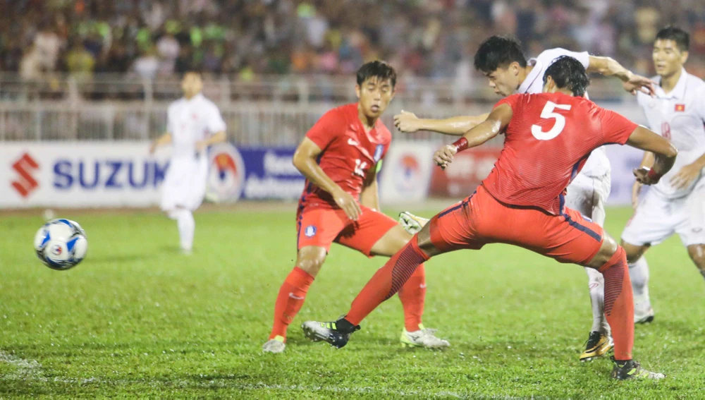 Văn Thanh một chiều vất vả với cầu thủ Hàn Quốc to, khỏe