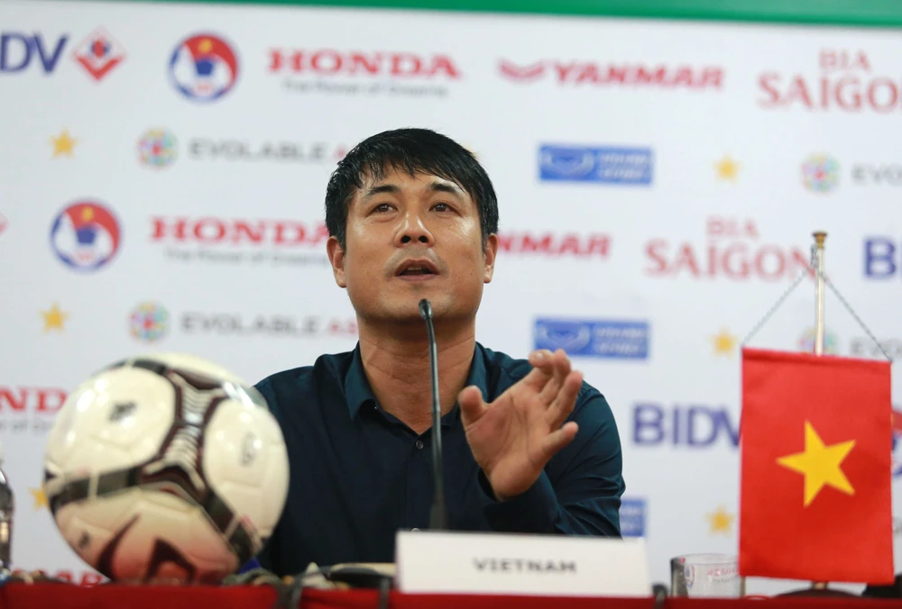 Thì HLV Hữu Thắng đã nhanh nhảu “đỡ đòn” cho học trò ruột. Ảnh: QUANG THẮNG