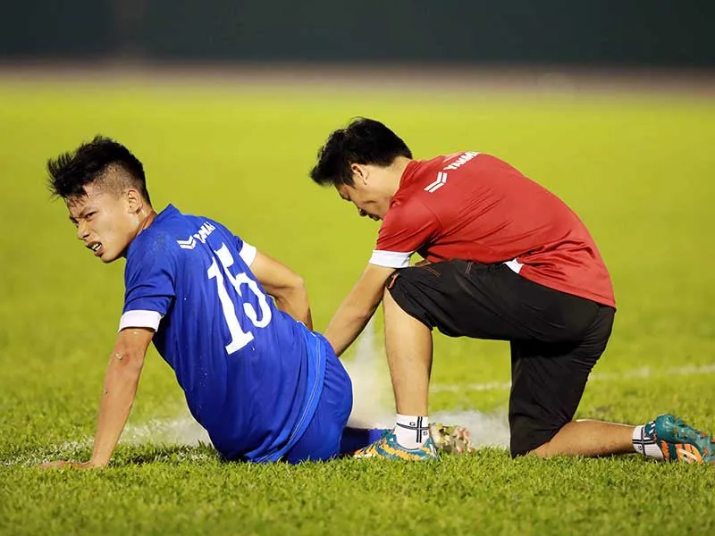 Chấn thương, chuyện thường ngày với mặt cỏ mà các đội tuyển Việt Nam tập trên mặt cỏ xấu. Ảnh: XUÂN HUY
