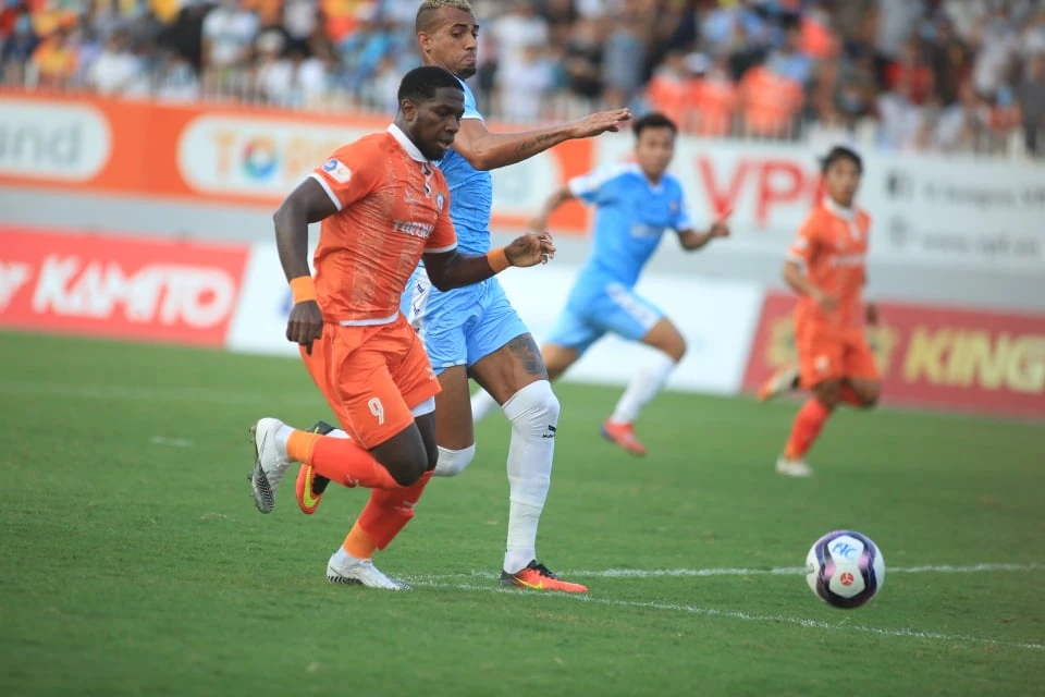 Rimario (9, T. Bình Định) vẫn tiếp tục vô duyên trước nhiều cơ hội. Ảnh: A.P