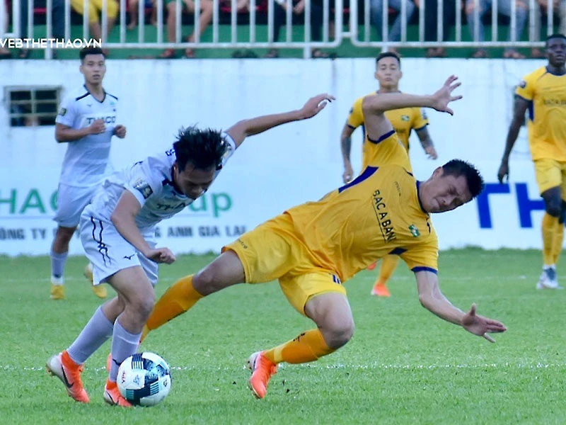 Thiếu người, SL Nghệ An chơi phòng ngự phản công càng khó hơn khi phía HA Gia Lai, HLV Kiatisak tận dụng hơn người rút một hậu vệ ra và đưa thêm tiền đạo nhập tịch Nguyễn Trung Đại Dương vào để đè đối thủ.