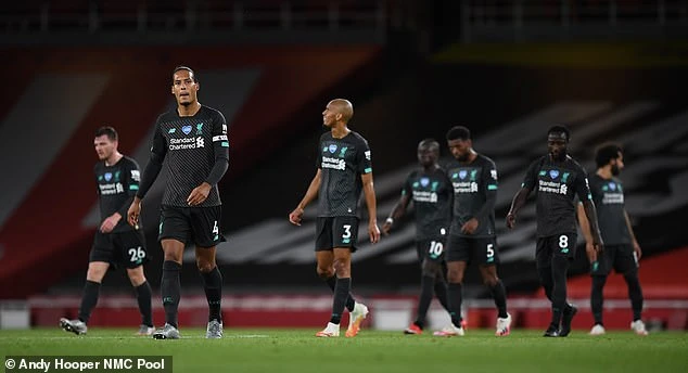 Các cầu thủ Liverpool "cúi đầu" sau thất bại trước Arsenal. ẢNH: NMC Pool