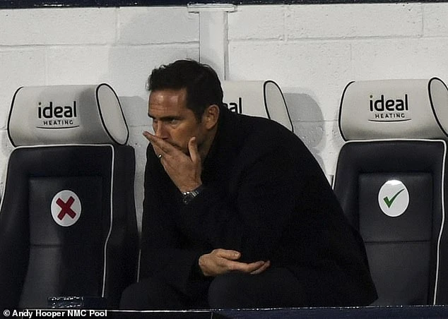 HLV Lampard liên tục thể hiện sự thất vọng trên băng ghế chỉ đạo. ẢNH: AP