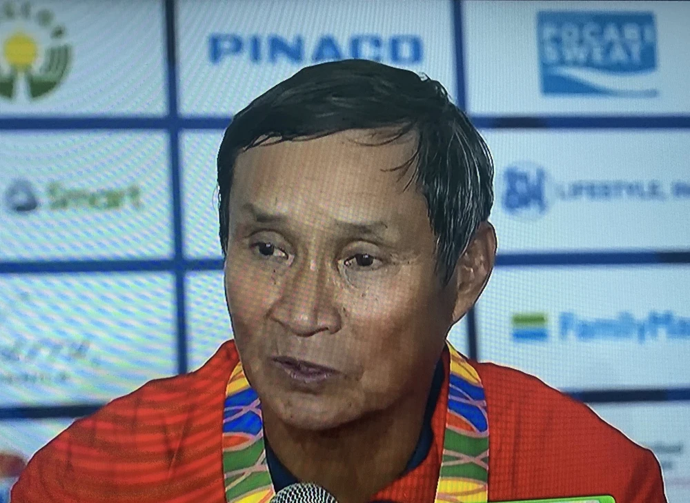 HLV Mai Đức Chung hạnh phúc với chiếc HCV SEA Games 30.